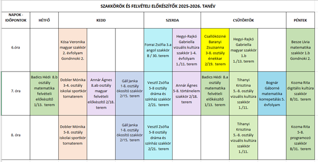 DÉLUTÁNI KÜLÖNÓRÁK, SZAKKÖRÖK